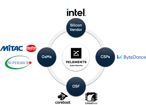 With the power of open source firmware, 9elements plays a pivotal role in the advancement of Intel Xeon firmware for the data center and embedded markets. Our expertise and proactive contributions make us a trusted partner for companies aiming to leverage open-source firmware solutions. Here's how we contribute to this ecosystem: