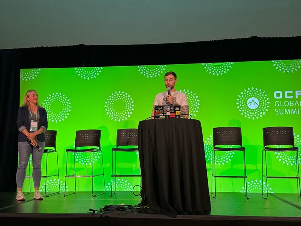 Alisson Goodman (Intel) presenting alongside Marvin Drees (9elements) at the OCP Global Summit 2024