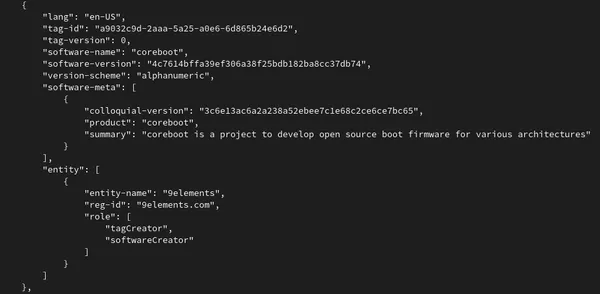 If enabled, coreboot takes the provided templates in src/sbom and builds coSWID files out of this. To generate these files, we developed our own tooling called goSWID. The code can be found here, but it will also be checked into coreboot together with the patchset.
