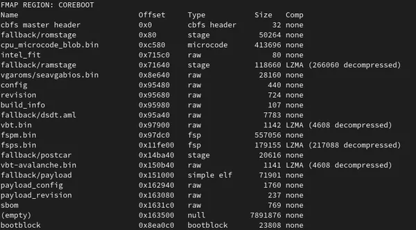 SBoM is here to change this and provides a list of used software parts that have been put together. Firmware consists of multiple parts, often lumped together as one binary. Even coreboot, as an open-source firmware projects, has to consume multiple closed-source binaries in order to work properly. Now the end user has an easy way to scroll through the SBoM and check in more detail what really is inside this binary blob called firmware.