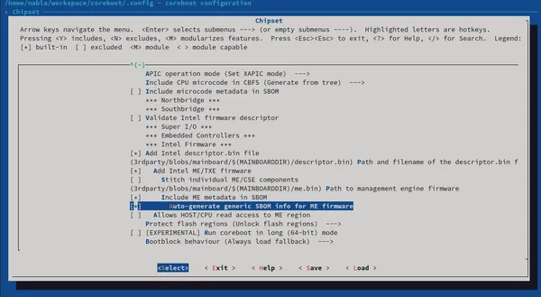 Kconfig SBOM for Intel ME